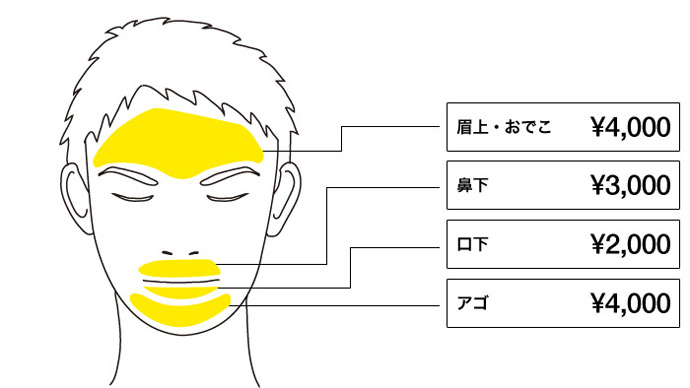 ※下の図はおおまかな施術部位を記しています。料金表に記載の無い部位等はお問合せ下さい。